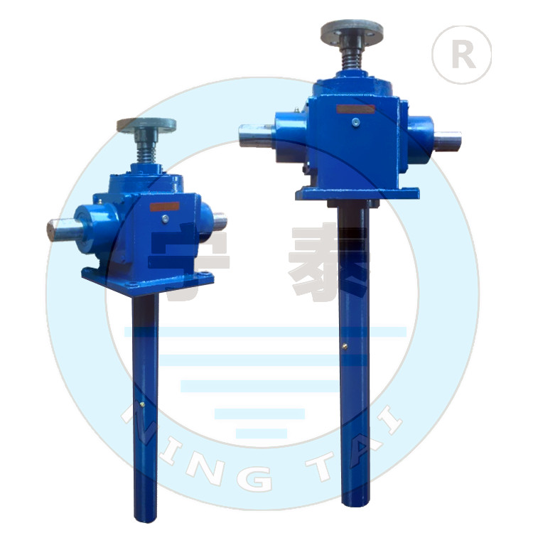 錐齒輪升降機(jī) 可廣泛用于機(jī)械、冶金、建筑、水利、化工、醫(yī)療、文化衛(wèi)生等各個行業(yè)。如:機(jī)械加工上重壓緊固裝置升降臺、翻轉(zhuǎn)裝置及塑料加工機(jī)械等;安裝和維修用爬梯和工具升降架、機(jī)車維修升降臺位;軋機(jī)滾道間隙調(diào)整、棺材或板材送位置的調(diào)整;鑄造啟模或混凝土凝土造型;冶煉方面用于調(diào)整電極、熱液體澆鑄;建筑方面用于移動設(shè)備和組合成品的模板,可升降的窗戶、墻壁、圍墻等;文化衛(wèi)生方面可升降舞臺、調(diào)整游泳池池面高度、調(diào)整手術(shù)臺高度;水利方面用于水庫的閘門和保護(hù)板;科研方面用于不能用人力調(diào)整的運動等。特適用于大型的升降平臺。
