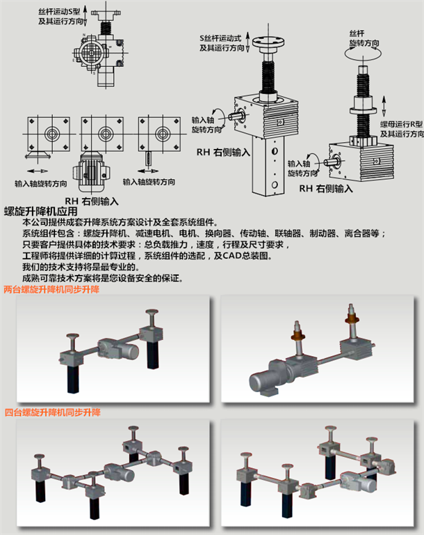 可以按照客戶要求非標設計,如不銹鋼殼體及絲杠螺旋升降機,多頭絲杠,耐高溫,耐低溫等產品。