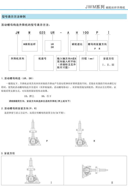 JWM蝸輪絲桿升降機活動螺母構造及型號表示方法