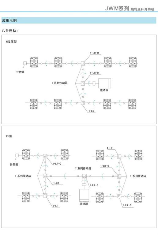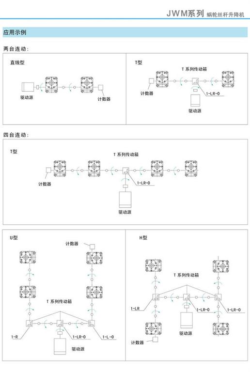 JWM蝸輪絲桿升降機應用示例(兩臺連動/四臺連動/八臺連動)