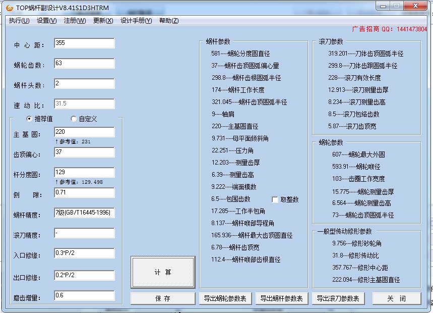 蝸桿蝸輪參數計算軟件